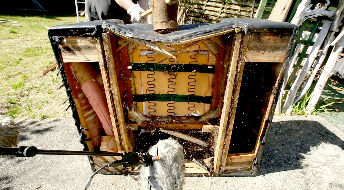 For the SD052 SOFA SMASH SFX Library, two old leather sofas were destroyed in order to capture the various sounds of hits, breaks, and impacts. Drops, throws, and drags were also recorded before the sofas were deconstructed into their constituent parts via rips, tears, and general demolition.